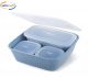 Contenitore in plastica ermetico 4 pezzi con coperchio, contiene un contenitore 3 litri 24 x 24 cm, due contenitori 0,30 litri 10 x 10 cm, e un contenitore 1 litro misure 12 x 22 cm.