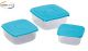 Contenitori 3 pezzi quadrati con coperchio colorato.