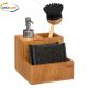 DISPENSER SAPONE CON SPAZZOLA IN BAMBOO E 2 SPUGNE NERE