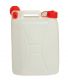 Tanica in plastica da 10 litri con tappo rosso.