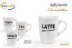 Tazza in ceramica con manico 315ml bianca con decoro scritta gesso assortita.